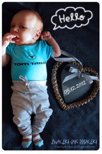 widzę, że u Was też rządzą dresiki. Ja wszystkie słodko-pierdzące niemowlęce śpioszki z króliczkami i misiami schowałam na dno szafy i nie zamierzam używać 🙂 Mateusz cudaśny 🙂