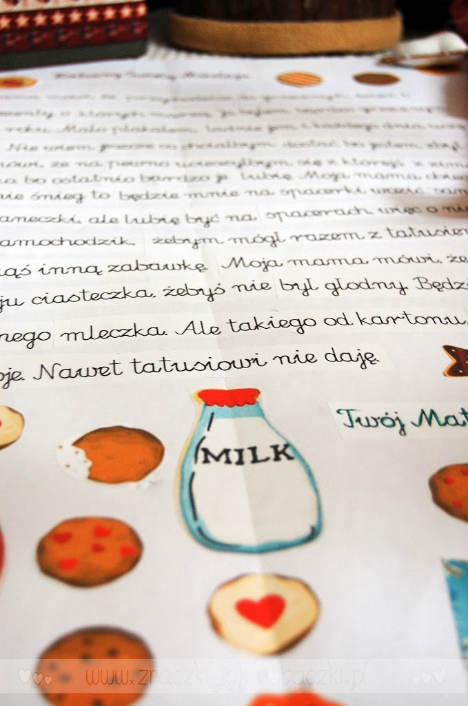 Żeby troszkę przekupić Mikołaja, na liście znalazły się również ciasteczka, które dla niego upieczemy na 6 grudnia. I pyszne mleczko.